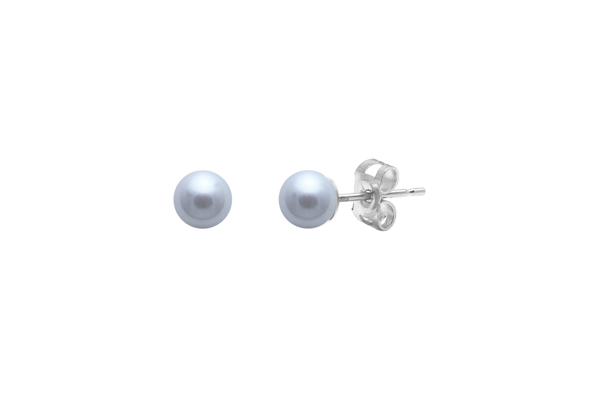 Pretty dove grey round freshwater 5-5.5mm pearl stud earrings on silver with silver butterfly backs.
